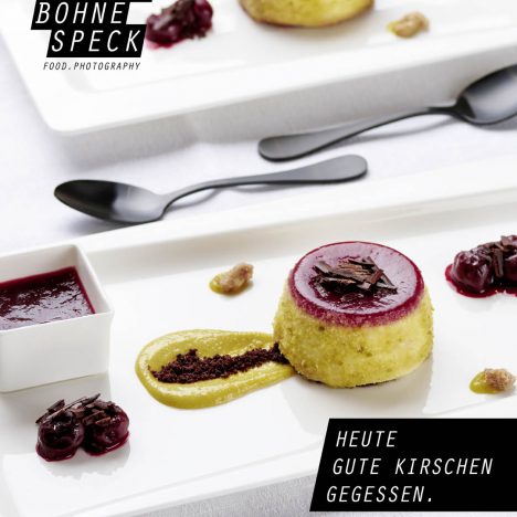 Mit MChef gute Kirschen gegessen.Ein tolles Dessert. Das Schwarwälder-Kirsch-Törtchenauf Pistaziencreme, dazu Kirschsauce, Kirschragout und Schokoladenbrösel. mchef.de